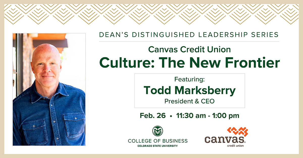 Join Beth Walker, Dean of CSU's College of Business, and Todd Marksberry, President & CEO of Canvas Credit Union, for an inspiring and insightful conversation on the role of culture in this free, interactive, online session.