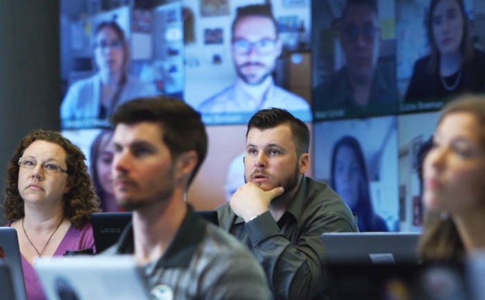Staying true to its mission to expand access to business education, the College of Business is using Mosaic to engage with more students in more innovative ways. The technology is highly scalable: the 27 high-definition screens can accommodate up to 80 students, and with its chat, group discussion, and polling features, Mosaic is also highly immersive. Some of its engagement capabilities include: